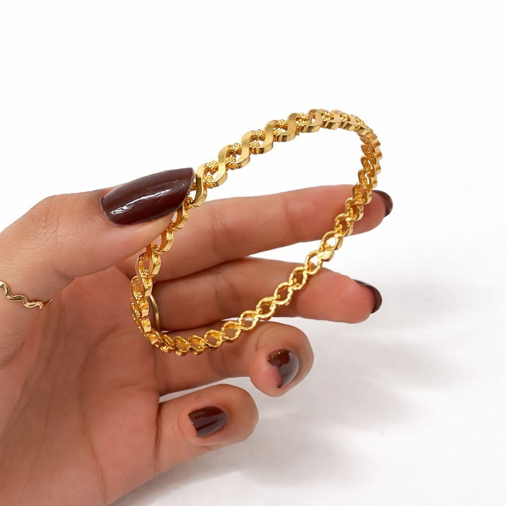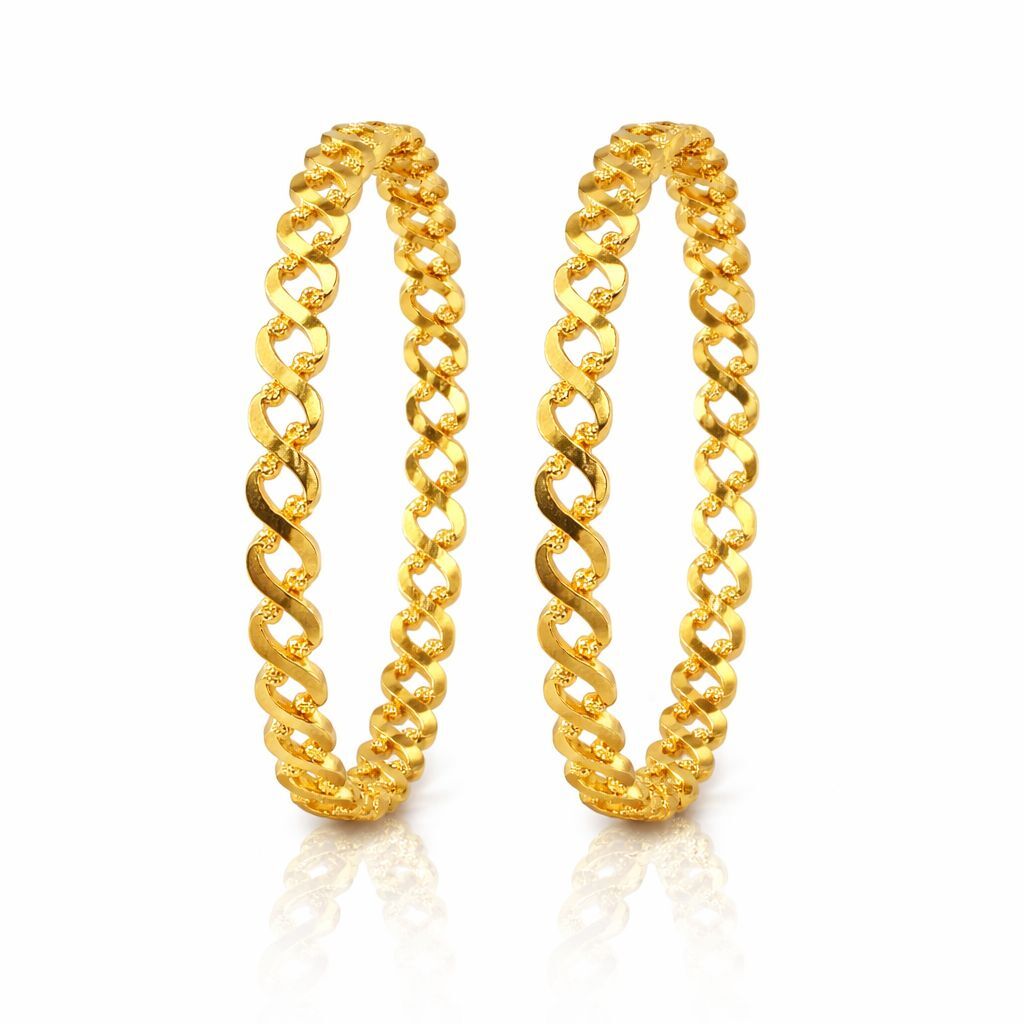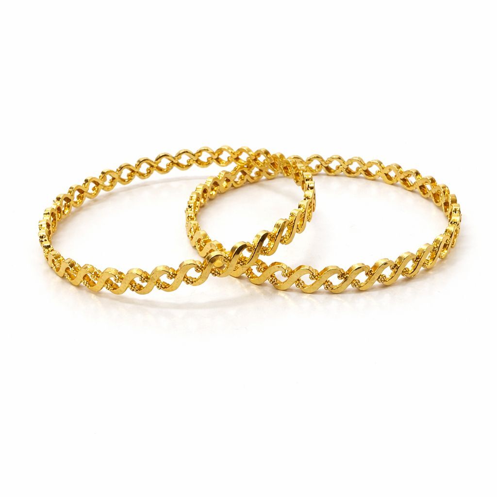 Add rich traditional shine to your jewelry collection with these gold plated twisted chain bangles, designed to create a real gold look without heaviness. The polished twisted link pattern adds texture and dimension, reflecting light with a warm festive glow.