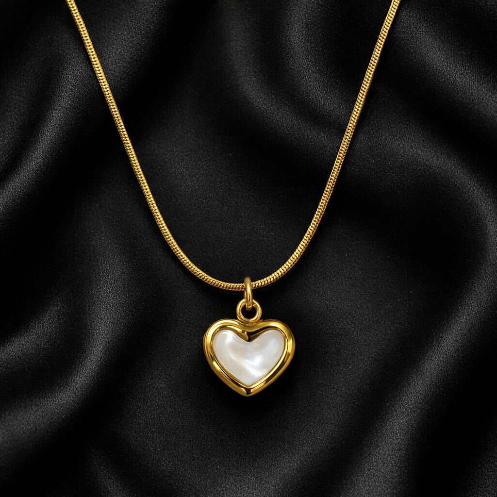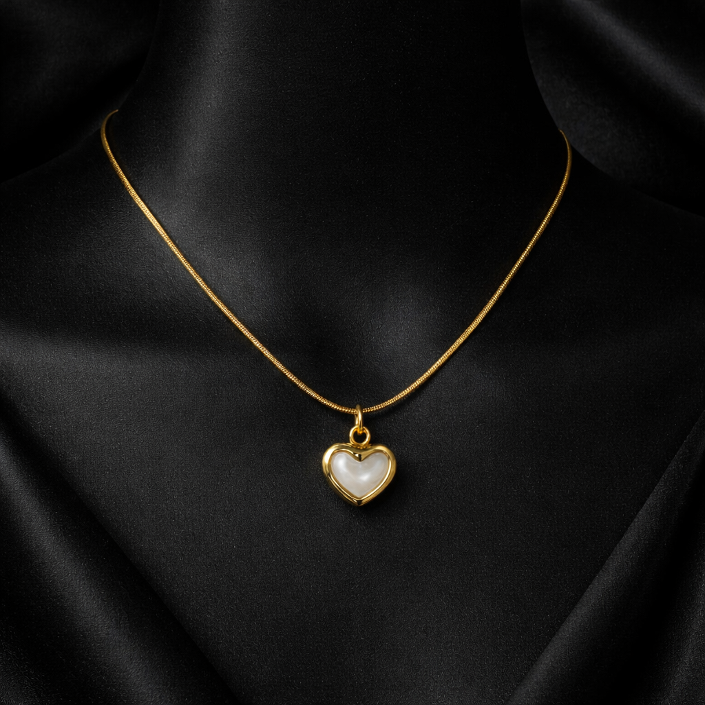 Gold-Tone Heart Pendant Necklace with Pearl Inlay — Elegant Minimal Jewelry